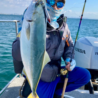 夜明けからの青物も荒れ荒れで苦戦して何とか60サイズのサワラと50ぐらいのハマチをステイルでヒット🎵特大サワラもワンチャンありましたが船縁でサワラカッターに…