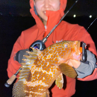 今回のゲストカップルはシーバス、アコウ、メバル全て狙いたいとの事だったので前半シーバスから。終盤のバチ抜けパターンで旦那さんがいきなり70UP!奥さんもカタクチパターン、オシアナで釣れてアコウへ。奥さんはベイトを使うのが初めてだったのですが何と一投目で初アコウ!更にサイズUPして40近いサイズも!ラストはクィーティーでメバル連発からのディレンジAMでまたもや70UPのシーバスと爆釣ナイトでした。